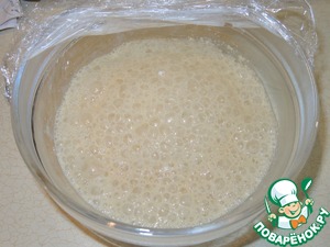 Дрожжи развести в теплом молоке, добавить 1 ст. л. сахара, накрыть плёнкой и поставить в тёплое место на 15-20 минут. Опара должна вспениться.
