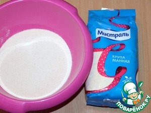 1. Берем 2 стакана манки и высыпаем в миску. -