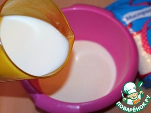 2. В отдельной посуде, смешиваем соду (0,5 ч. л.) с кефиром (0,5 л) и перемешиваем.