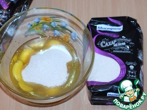 3. Вбиваем 4 яйца с 1 стаканом сахарного песка до бела. Сахар вводите понемногу.