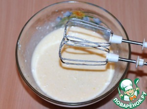4. Добавляем в яичную смесь 8 ст. ложек мягкого масла, ванилин, опять взбиваем миксером.