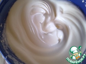 Белки взбить с оставшимся сахаром до устойчивых пиков.
