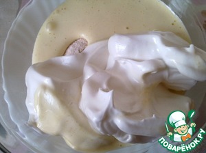 К рисовой муке добавляем взбитые с сахаром белки и желтки.