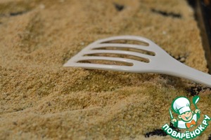 Выкладываем ровным слоем смесь на противень и запекаем в духовке