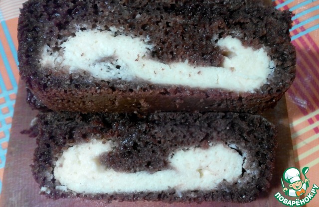 Восхитительный кекс!!! Делала все строго по рецепту, но решила не заморачиваться с маленькими формочками и пекла в одной большой форме для кекса. Сначала вылила тесто, а на него, на все пространство, выложила начинку. Минут через 15 заглянула в духовку и обомлела - моя начинка испарилась. Начала впадать в панику, но решила допечь. Корила себя последними словами за свою лень все оставшееся время выпечки. Кекс выпекался всего минут 45. Еле дождалась пока чуть остынет и решилась разрезать его. И вижу я вот такую красоту!!! Начинка опустилась в середину кекса!!! И вот, я выношу свое творение на Ваш суд. Кекс на вкус получился просто сказочный. Сочетание творога, кокоса, какао и корицы меня просто покорило!!! Огромное спасибо за рецепт!!!