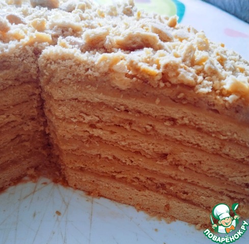 Смазать коржи кремом и обсыпать крошкой. Оставить пропитываться. У меня стоял ночь.