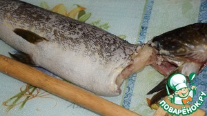 Берем нашу рыбку. Чистим ее. Вырезаем жабры. Отрезаем щуке голову, но не насовсем. А вот так.