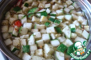 Бульон у меня был готовый. Процедила, поставила на огонь. Когда закипел, положила горсть риса ТМ Мистраль Кубань. Овощи порезала произвольно.