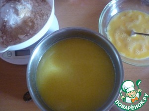 Медово-имбирный корж: в кастрюлю налить молоко, добавить сахар, мёд, сливочное масло. Нагреть, помешивая, до растворения сахара и масла.