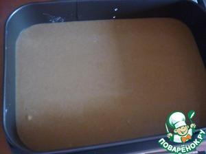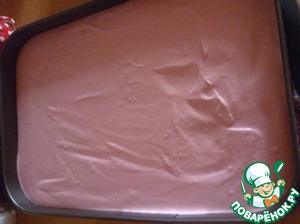 На остывший медово-имбирный корж вылить творожно-вишнёвый слой. и поставить в холодильник на 1,5-2 часа (можно и подольше), пока не схватиться.