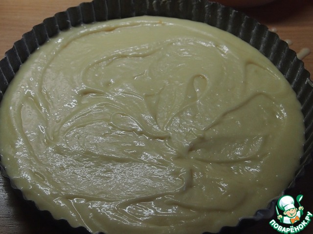 Добавить остальной сок лимона, мягкий творог и муку, смешанную с разрыхлителем. Замесить тесто. Форму (у меня диаметром 25 см) смазать маслом, посыпать мукой. Выложить тесто, разровнять.