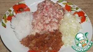 Фарш, мясо, лук и рис перемешиваем. Не солим, т. к. виноградные листья, вяленое мясо и бульон уже солоноваты. -