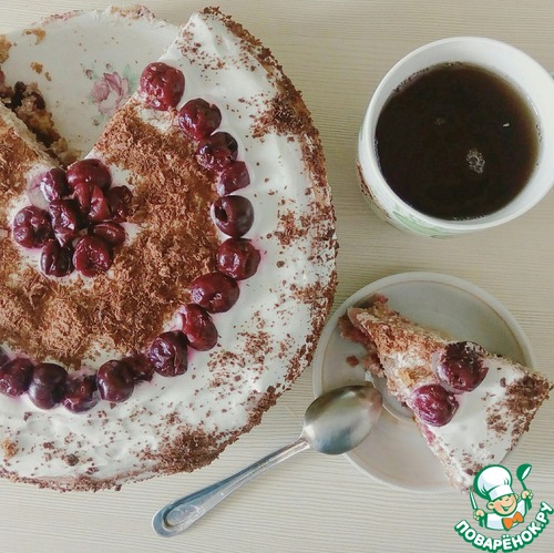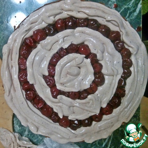 Он же - шварцвальдский вишневый торт. Предлагаю вам свой вариант этого вкуснейшего торта! Шоколадное, коричное и вишневое удовольствие с кремом из домашнего маскарпоне! Описание может показаться страшным, но на деле все намного проще! Мы ведь не боимся трудностей? :) Бисквит я готовила утром, а собирала торт вечером. Форма 26 см.