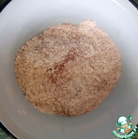 Далее нужно просеять через сито муку, крахмал, корицу и какао.