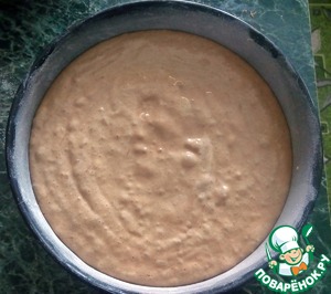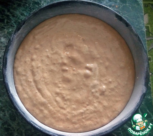 Берем форму и делаем "французскую рубашку": смазываем всю форму маслом и посыпаем мукой или манкой (и дно, и бортики). Излишки стряхиваем. Тесто переливаем в форму и пару раз стучим дном об стол.