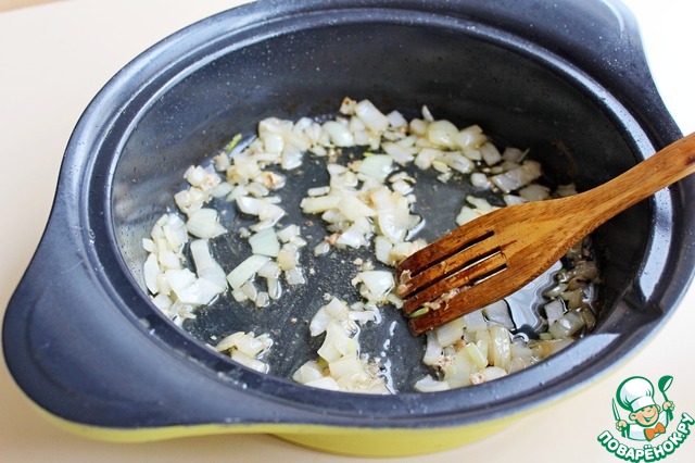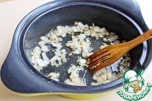 В масле где жарилась курица обжариваем мелко нарезанный лук до мягкости. |