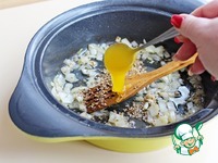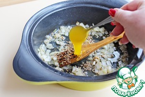 Добавить мед, перемешать и вместе обжарить 1 минуту чтобы открыть аромат специй. |