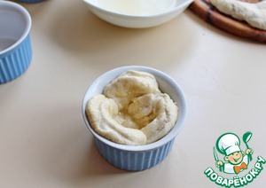 И выложить по 3 шт внахлест в небоьшие формочки для маффинов.