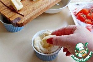 В середину выложить кусочек сыра моцареллы (можно любой сыр).