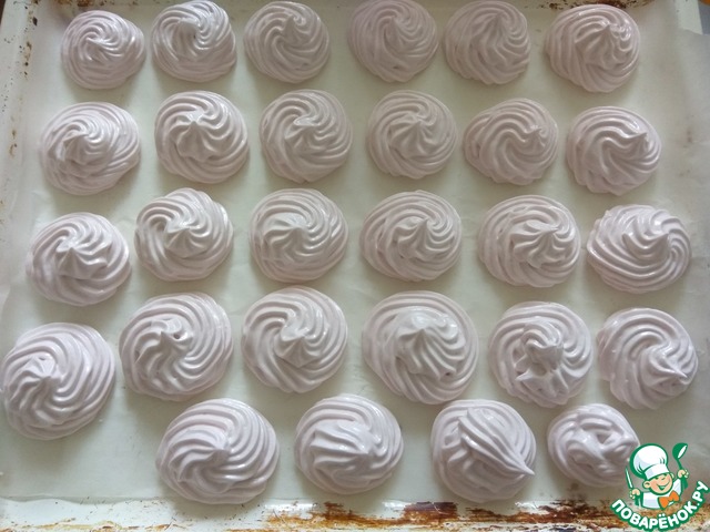 Когда он загустеет (превратиться в пену) постепенно всыпать сахар смешанный с ванилином и влить лимонный сок. Взбивать до пиков.