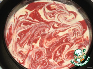 Черенком от ложки или лучинкой сделать несколько круговых движений, чтобы немного смешать массы, формируя мраморный рисунок.