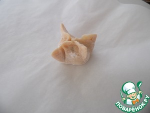 Затем защипнуть концы и нужно покатать в шарик, затем положить шарик швом вниз, верхнюю часть чуть сформировать путём нажатия руками