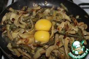 • К фасоли добавляем яйца, перец, немного соли и мешаем до полной готовности яиц (минуты 2).