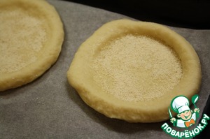 Тесто- 2/3 раскатать, вырезать стаканом кружочки.