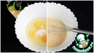 Куриное яйцо (4шт.) взбить с щепоткой соли и ванилином (1г.)