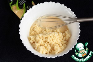 Кус-кус ТМ "Мистраль" (1 стак.) залить горячей водой (2 стак.), закрыть емкость крышкой и оставить для набухания.