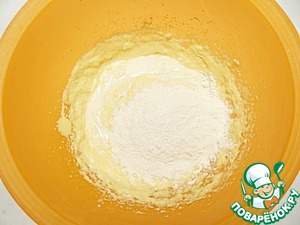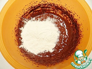 Добавляю муку, просеянную с разрыхлителем.