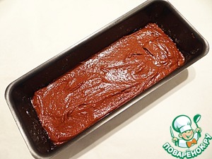 Прямоугольную форму для кекса (размер моей формы 24*9,5 см) смазываю растительным маслом. Шоколадное тесто выкладываю в форму, выравниваю тесто в форме. Выпекаю шоколадный слой в разогретой до 180 градусов духовке около 15 минут.