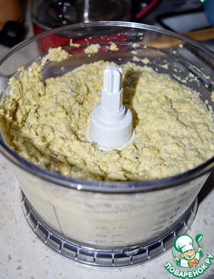 Если масса получается слишком густой и плохо измельчается, нужно добавить немного водички. Солим, перчим по вкусу.