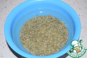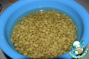 Промыть чечевицу и замочить её водой на ночь или где-то на 4 часа.