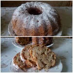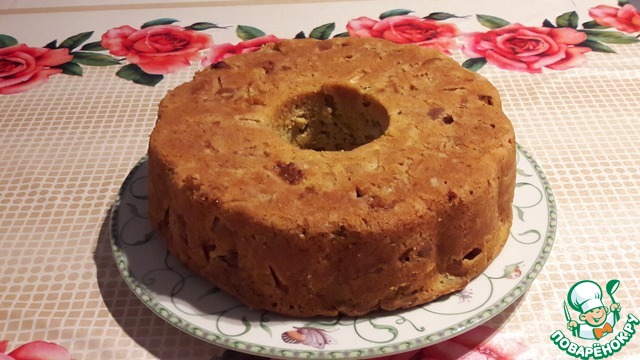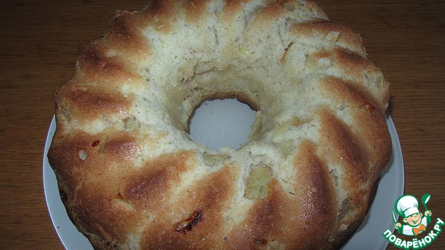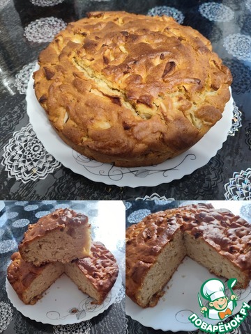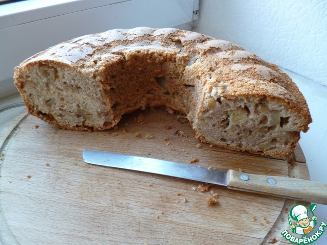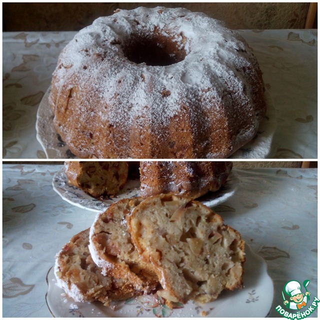 Кекс, как я уже говорила, простой и получается очень большим. Сочетание теста и яблок в нем идеально. Он не получается мокрым, но нежным и воздушным.