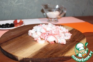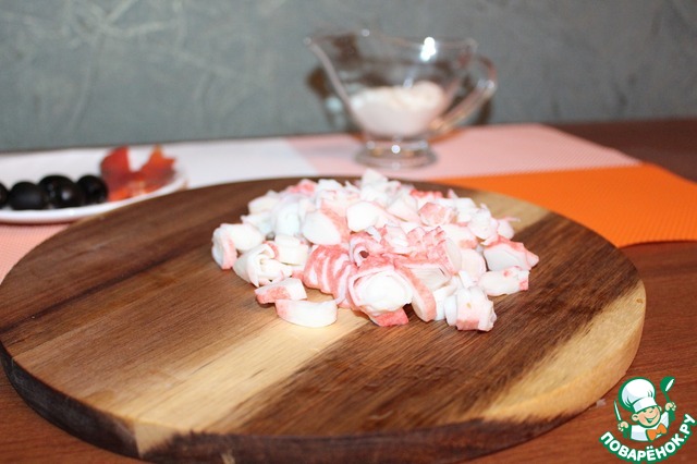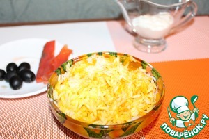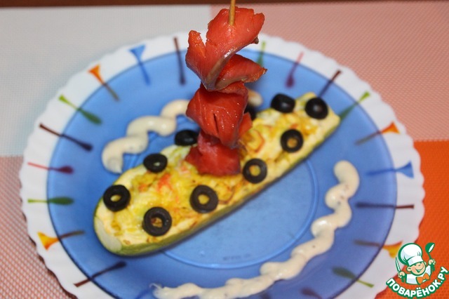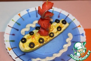 Украшаем черными оливками и ломтиками солёной кеты и... попутного ветра...