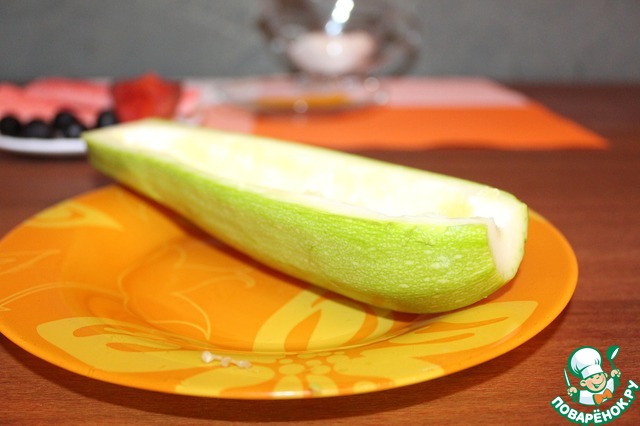 Удаляем середину кабачка- делаем корпус нашему кораблику.