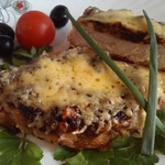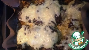 • Через 40 минут открываем духовку и на каждый кусочек выкладываем сыр.