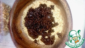 нарезать чернослив на мелкие кусочки. Орехи в блендере порубить, но не в пыль!!! Я и чернослив в блендере порубила.