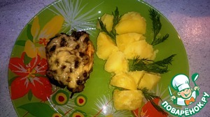 • Через 10 минут все готово! Достаем и сервируем с гарниром! У меня вареная картошечка!