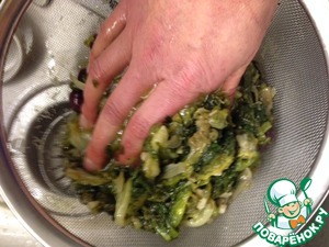 Отжимаем хорошенько нашу скаролу на случай если не испарилась вся жидкость во ремя варки. -