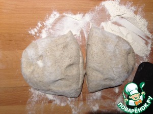 Разделяем тесто на две части, одна чуть больше и одна чуть меньше.