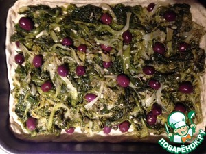 Накрываем вторым пластом и ставим в духовку на 20 минут.
