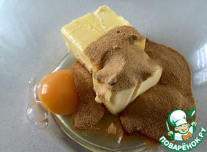 Сливочное масло слегка размягчите, добавьте яйцо и сахар.