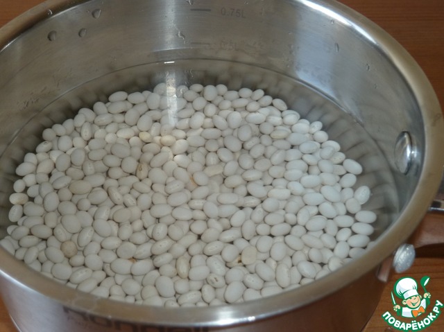 Фасоль сварить, согласно инструкции на упаковке, часа 1,5, воду солить в конце.