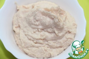 Остывшую фасоль с чесноком пробить в кухонном комбайне или блендером, понемногу добавляя растительное масло, пока не получится консистенция крема.