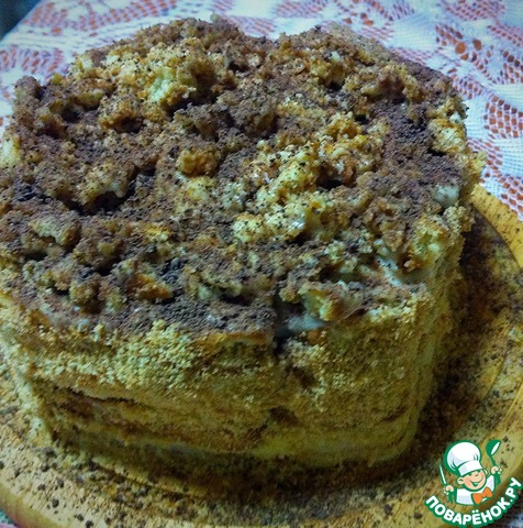 Смазала весь торт кремом и посыпала измельченным печеньем.