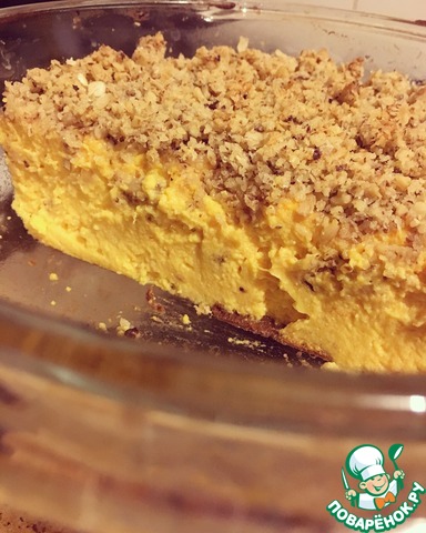 Сегодня у меня нежная тыквенно-творожная запеканка с апельсиновым вкусом, а сверху хрустящая крошка из овсяных хлопьев и грецкого ореха.