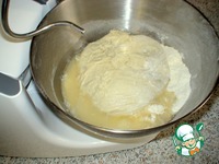 Тесто: в чашу миксера выложить опару, все ингредиенты для замеса теста, кроме сливочного масла. Месить 3 мин. на 1 скорости, 3-4 минуты на максимальной скорости. |