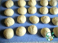 Выброженное тесто разделить на равные части. Я формировала по 45 гр, вышло 24 пирожка. Округлить, подкатать в шарики, дать отдохнуть 10-15 мин. |